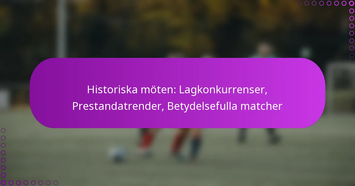 Historiska möten: Lagkonkurrenser, Prestandatrender, Betydelsefulla matcher